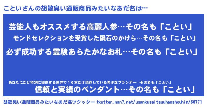 | 男性向けラノベタイトル風あだ名 | 『こといの憂鬱』『魔法科高校のことい』 |