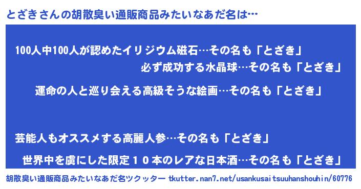 | ポケモン風あだ名 | 『トザキダネ』『トックウザ』 |