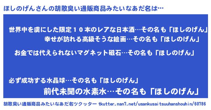 | ヘコむあだ名 | 『ほしのげん(笑)』『豆乳』『ほしお』 |