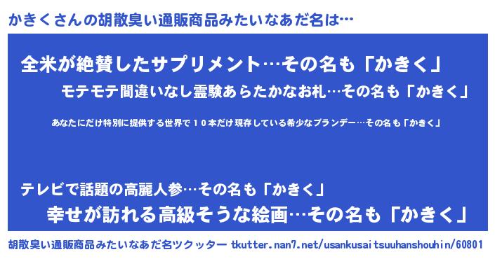 | 意味不明あだ名 | 『住所不定無職かきく(89歳)』 |