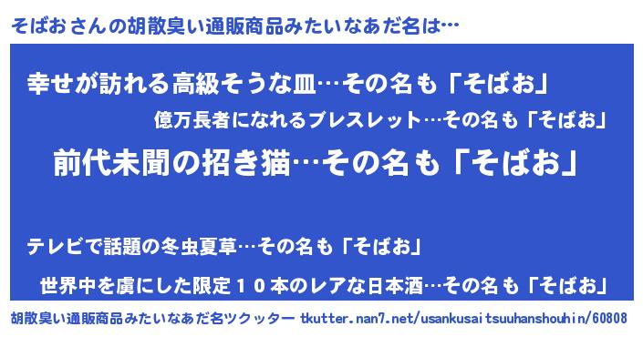 | ヒーロー風カッコイイあだ名 | 『ネオソバオ』『ウルトラそばおマン』 |
