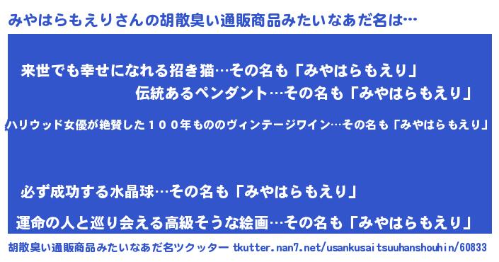| 伝説のあだ名 | 『聞きしに勝る吟遊詩人みやはらもえり』 |