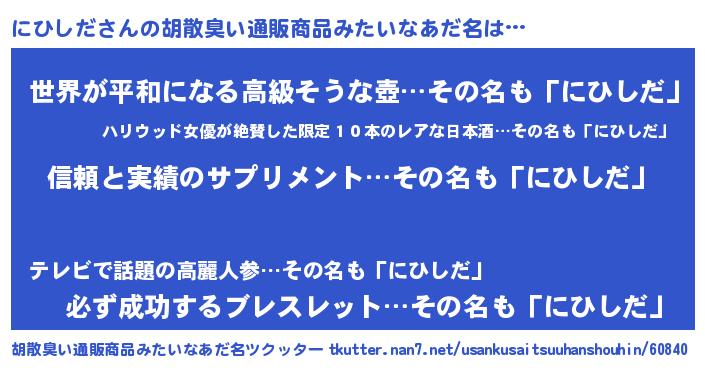 | ポケモン風あだ名 | 『ヒニヒシダ』『ニヒシダネ』 |