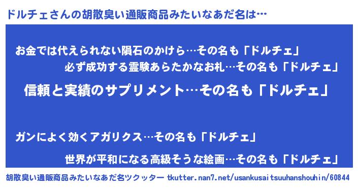 | 意味不明あだ名 | 『とにかく怪しいドルチェ』 |