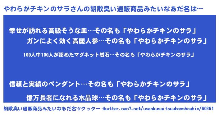 | ヒーロー風カッコイイあだ名 | 『友情の使者やわらかチキンのサラ』 |