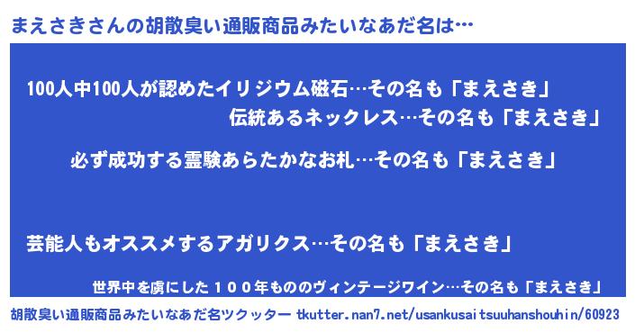| 男性向けラノベタイトル風あだ名 | 『緋弾のマエサキ』『まえさきの憂鬱』 |