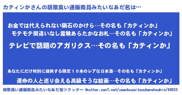 | 意味不明あだ名 | 『自称カティンか』『ペロリンカティンか』 |