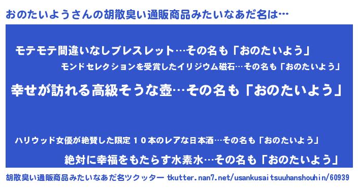 | 意味不明あだ名 | 『おのたいようフォーエバー』 |