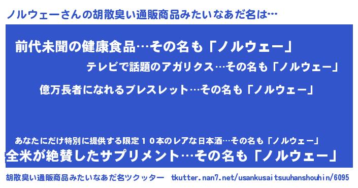 | 男性向けラノベタイトル風あだ名 | 『ノルウェーアートオンライン』 |