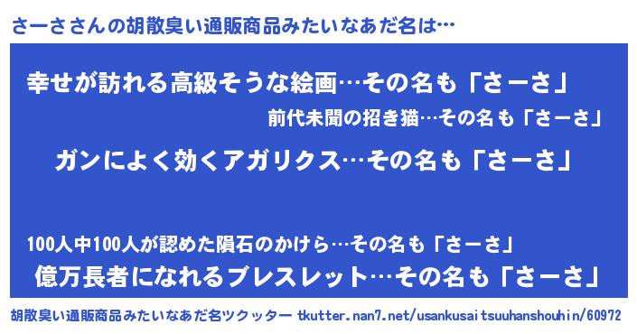 | 意味不明あだ名 | 『自称さーさ』『しいたけ科さーさ属』 |