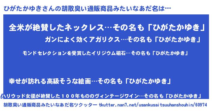 | 男性向けラノベタイトル風あだ名 | 『ノーゲーム・ノーヒガタカユキ』 |