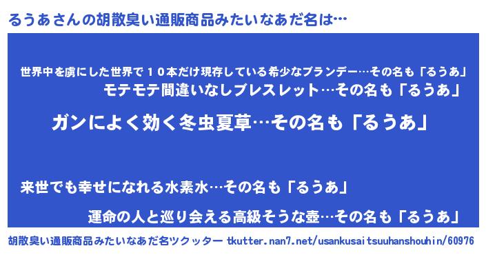 | 肩書あだ名 | 『るうあ総統』『るうあ教官』 |