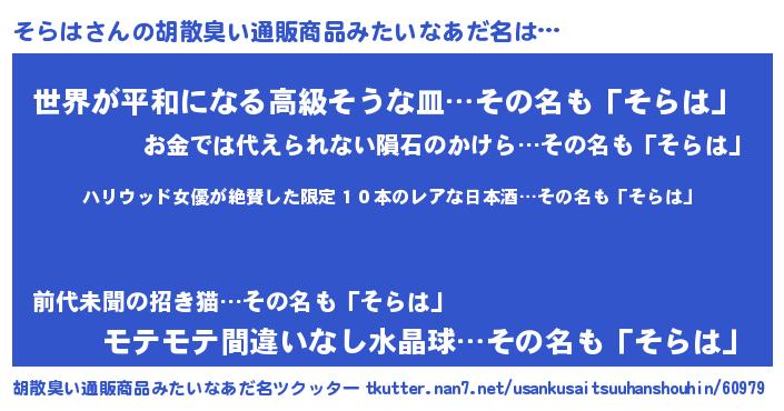 | 意味不明あだ名 | 『住所不定無職そらは(41歳)』 |