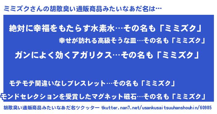| 意味不明あだ名 | 『自称ミミズク』『永久保存ミミズク』 |