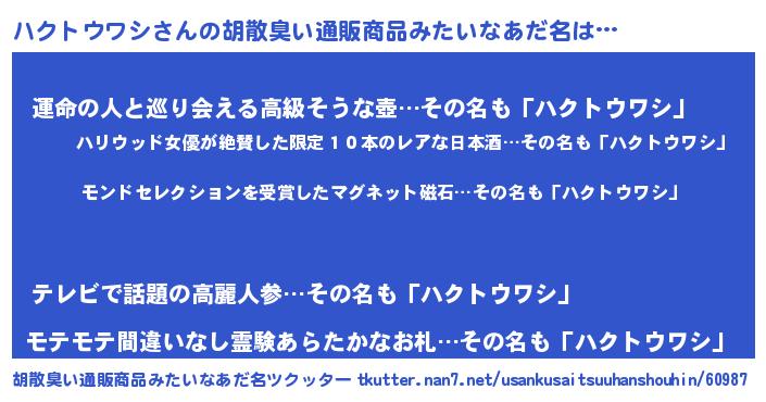 | ポケモン風あだ名 | 『ハックウザ』『ハクトダネ』 |