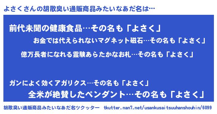 | 意味不明あだ名 | 『ペロリンよさく』『永久保存よさく』 |