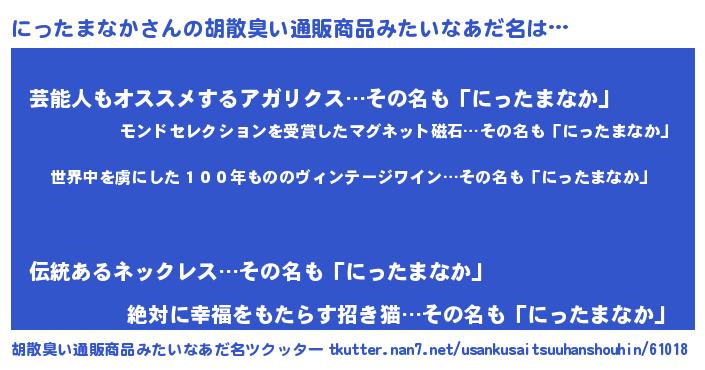 | ヘコむあだ名 | 『にったまなか(小並感)』『にっっぺ』 |