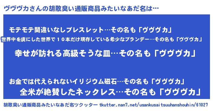 | 欧米人風あだ名 | 『アンジェラ・ヴヴヴカ』 |