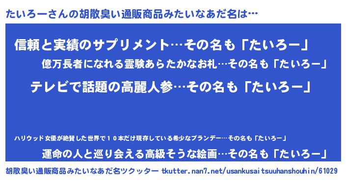 | 意味不明あだ名 | 『自称たいろー』『エリンギ科たいろー属』 |
