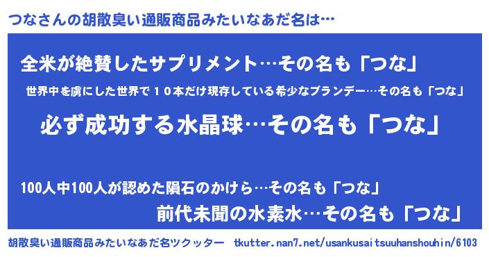 | ヘコむあだ名 | 『つなにゅー』『つなお』『豆乳』 |