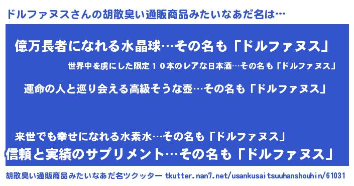 | 意味不明あだ名 | 『ドルファヌスフォーエバー』 |