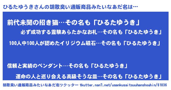 | ヘコむあだ名 | 『ひるたゆうき(笑)』『レバニラ』 |