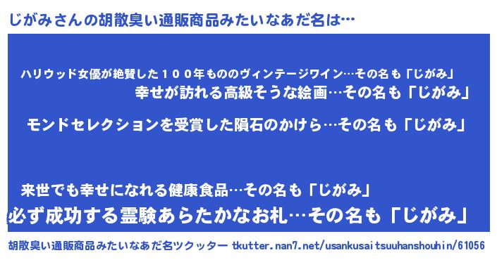 | 欧米人風あだ名 | 『ダニエルじがみ』『ダレノガレじがみ』 |