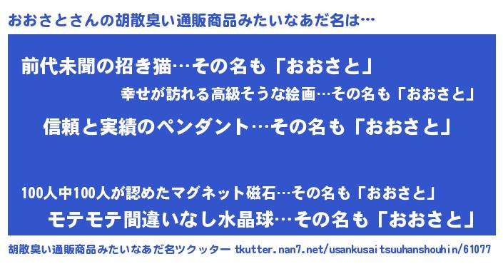 | 意味不明あだ名 | 『とにかく怪しいおおさと』 |