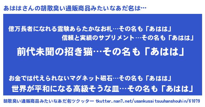 | ヘコむあだ名 | 『あはは(笑)』『あはもー』 |