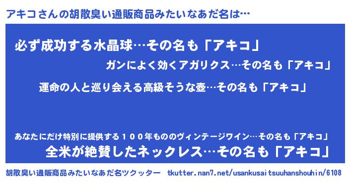 | 意味不明あだ名 | 『アキコフォーエバー』『ペロリンアキコ』 |