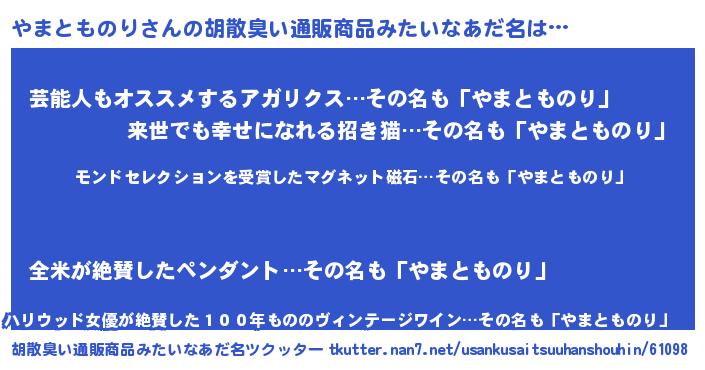 | ヘコむあだ名 | 『やまとものり(小並感)』『やまぷりん』 |