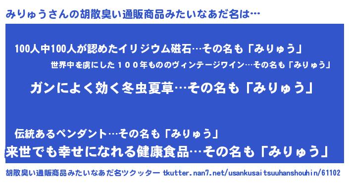 | 肩書あだ名 | 『みりゅう中将』『みりゅう総統』 |