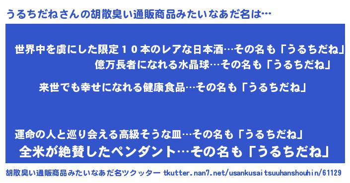 | 意味不明あだ名 | 『永久保存うるちだね』 |