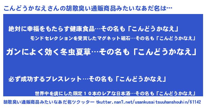 | 女子向けラノベタイトル風あだ名 | 『こんどうかなえなんてお断りですっ。』 |