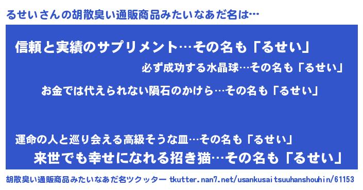 | ヒーロー風カッコイイあだ名 | 『愛の使者るせい』『黄金騎士ルセ』 |