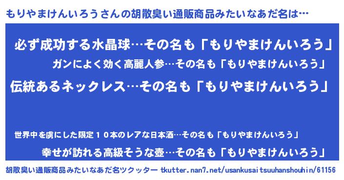| 意味不明あだ名 | 『とにかく怪しいもりやまけんいろう』 |