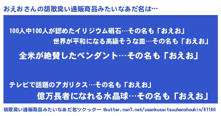 | ヒーロー風カッコイイあだ名 | 『天弓騎士オエ』『正義の使者おえお』 |