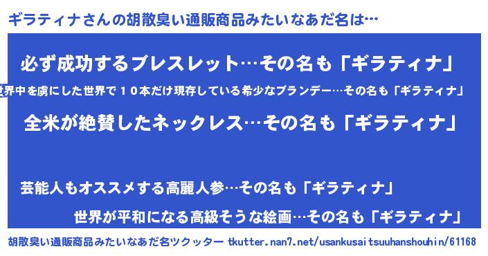 | 意味不明あだ名 | 『とにかく怪しいギラティナ』 |