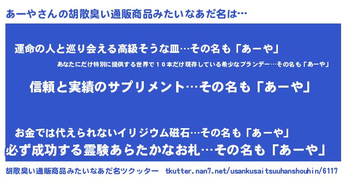 | 男性向けラノベタイトル風あだ名 | 『アーヤスレイヤー』『あーやの憂鬱』 |