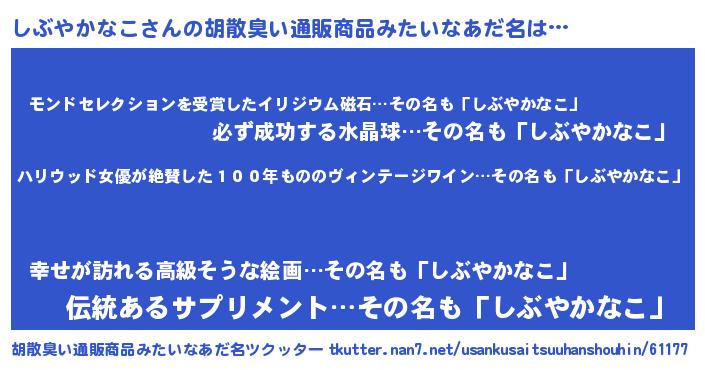 しぶやかなこさんの胡散臭い通販商品みたいなあだ名をツクッター!