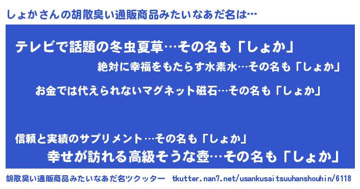 | ヘコむあだ名 | 『なまこ酢』『しょか(遠い目)』 |