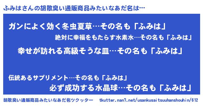 | ヘコむあだ名 | 『牛乳』『ふみっふぃ~』『ふみっぺ』 |