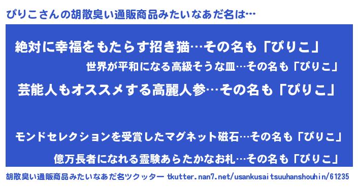 | 意味不明あだ名 | 『自称ぴりこ』『永久保存ぴりこ』 |