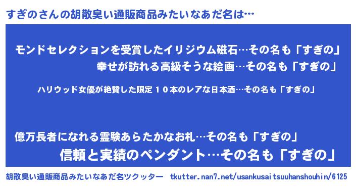 | 意味不明あだ名 | 『住所不定無職すぎの(59歳)』 |