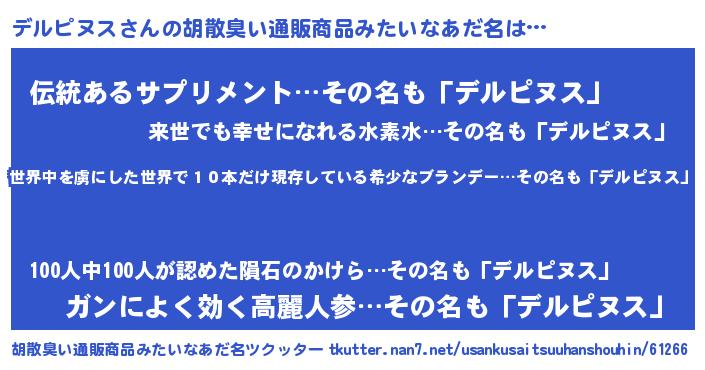 | ヘコむあだ名 | 『デルぷりん』『デルピヌス(震え声)』 |
