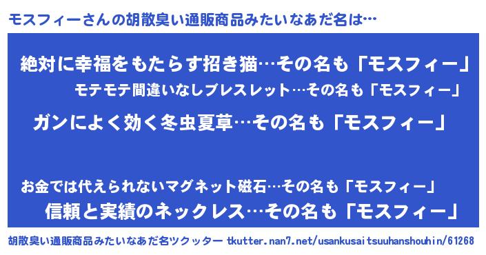| 男性向けラノベタイトル風あだ名 | 『緋弾のモスフィー』『モスフィーの憂鬱』 |