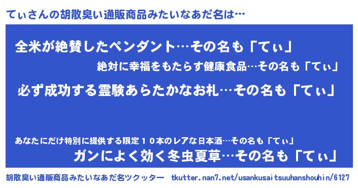 てぃさんの胡散臭い通販商品みたいなあだ名をツクッター!