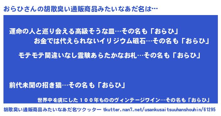 | ヒーロー風カッコイイあだ名 | 『スーパーオラヒ』『ウルトラおらひマン』 |