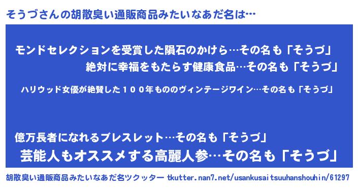 | 意味不明あだ名 | 『住所不定無職そうづ(11歳)』『自称そうづ』 |
