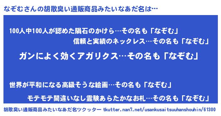 | 意味不明あだ名 | 『自称なぞむ』『眠気覚ましガムなぞむ味』 |